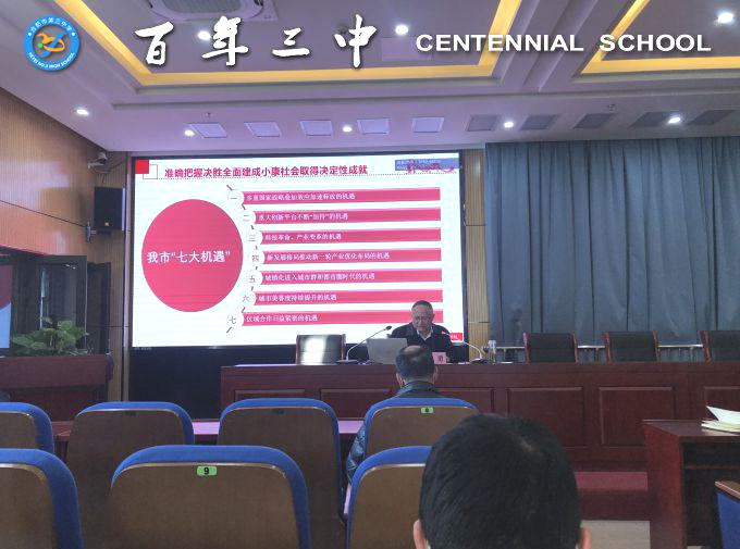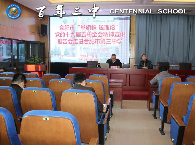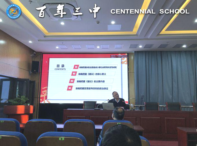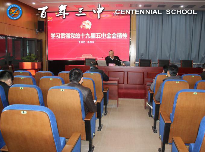 党的十九届五中全会是在关键的时期召开的一次重要的会议,学习贯彻党的十九届五中全会精神是全校教职工当前和今后一个时期的重要政治任务。希望全体三中人以此次宣讲会为契机,不断地加强学习,切实用党的十九届五中全会精神统一思想、指导实践、推动工作,将学习成果转化为工作动力,为百年三中高质量发展作出自己的贡献。