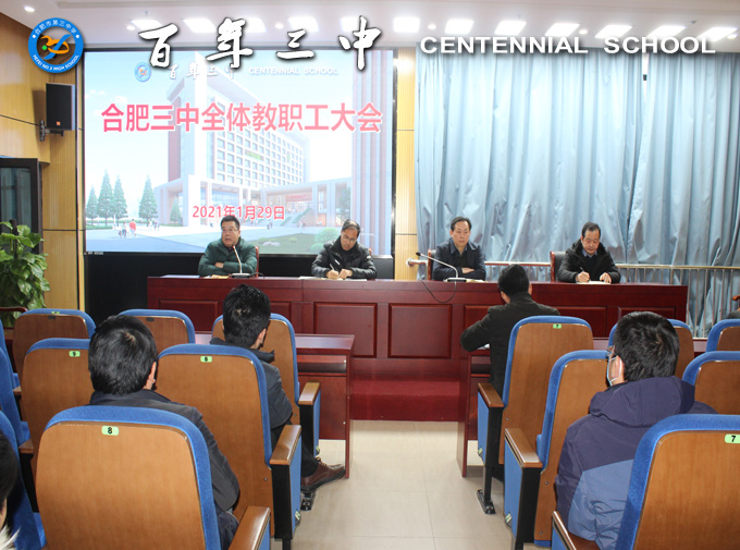 校长毛晓斌强调,过去的一年里,在全体教职工的共同努力下,学校教育教学后勤保障工作取得了较为满意的成绩。一是校园面貌发生新变化。学校一期、二期改造工程顺利完工;二是办学迈向新征程。建校百年展示会举办成功、圆满完成党委升格;三是依法治校取得新进展,以市委巡察工作为契机,认真梳理各项规章制度,全面推进依法治校;四是办学成绩取得新突破,五育并举工作、高考成绩、师生各类别活动和比赛获奖等。同时,安排部署了学校的寒假各项工作以及2021年的发展规划。最后,他代表学校向辛勤耕耘的全校教职工致以新春的祝福和节日的问候!提醒大家高度重视做好疫情防控工作,度过一个平安、欢乐、祥和的春节。