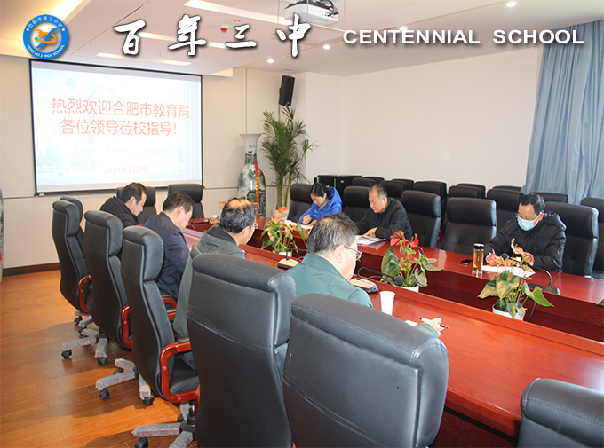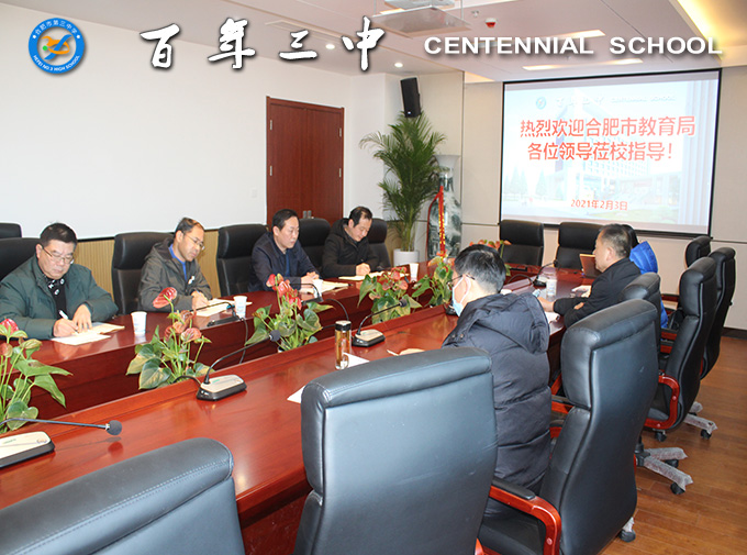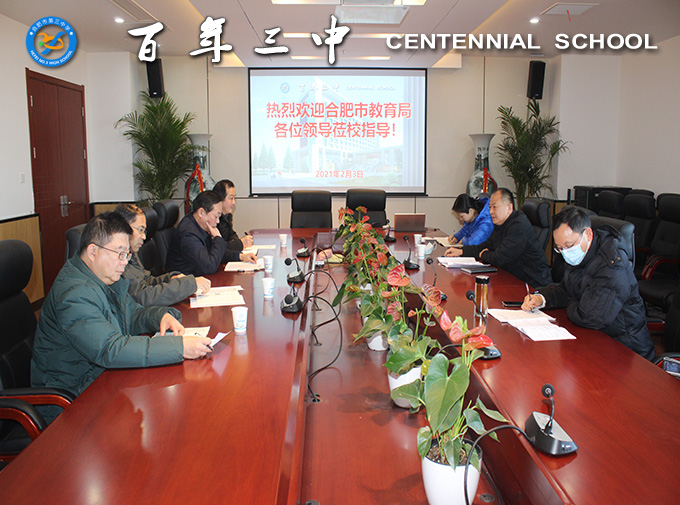 2021年2月3日上午,市纪委监委驻局纪检监察组副组长杨建平、市教育局财务审计处处长冯其宏、市教育局机关纪委副书记杨雯一行莅临合肥三中,就2021年元旦、春节期间作风建设等工作展开调研。校党委书记马剑、校长毛晓斌、副校长冬云、陈卓等陪同调研。