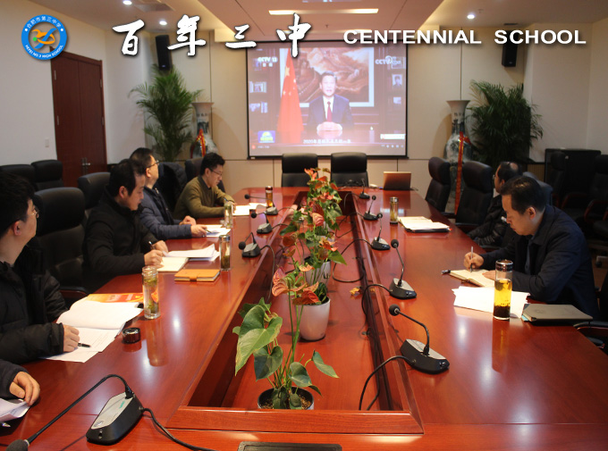 与会人员共同观看视频——国家主席习近平发表二〇二一年新年贺词。并结合贺词内容和会前学习材料(《中共中央政治局召开民主生活会强调,加强政治建设提高政治能力坚守人民情怀 不断提高政治判断力政治领悟力政治执行力》、《习近平要求广大党员干部强“三力”》),联系工作实际,重点围绕党建工作、教学教研、德育工作、后勤保障以及年级部管理等多方面回顾过去,展望未来,整个研讨交流过程既有高度,又有广度和深度。