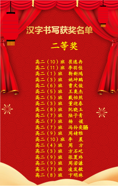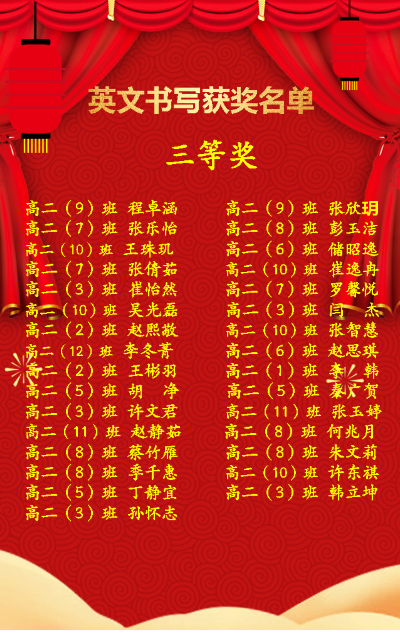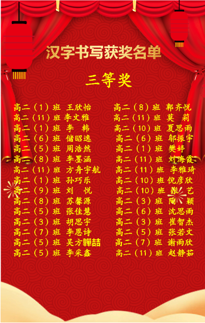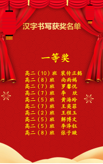 赛后,年级部组织评委老师,坚持公平、公正、公开的比赛原则,认真评选出优秀作品和获奖同学。通过本次书写大赛,同学们享受着书写过程的乐趣,进一步展示了书写水平,提高了同学们的综合能力,陶冶了广大师生的情趣,丰富了校园文化生活。营造了积极向上、清新高雅、健康文明的校园文化氛围。