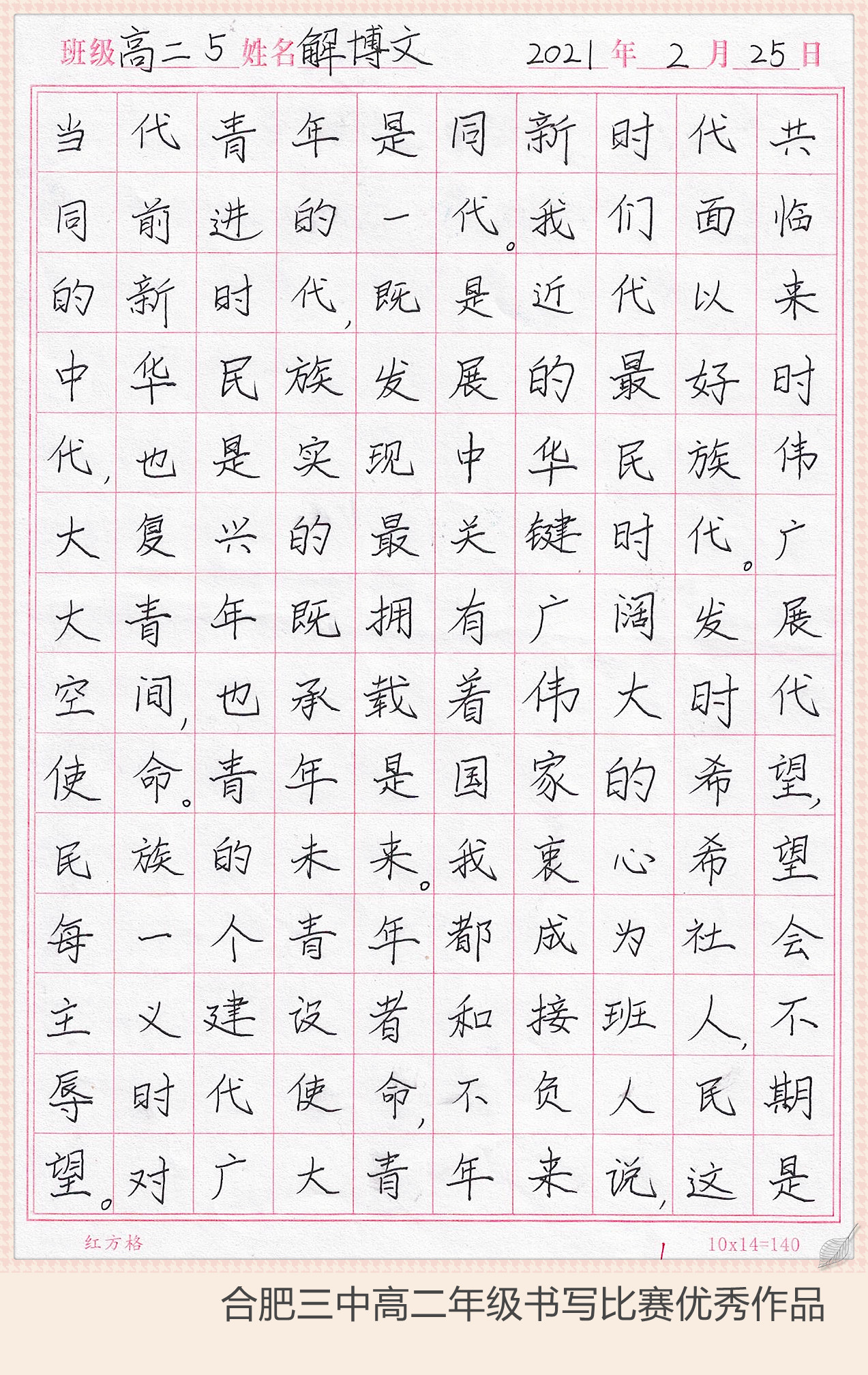 下面让我们继续欣赏大合三优秀的书写作品吧……