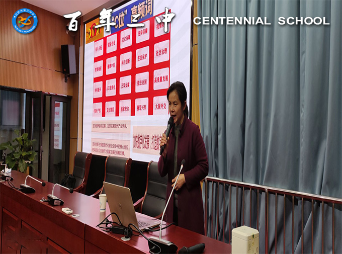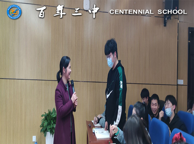 宋老师直奔主题,向同学们介绍了“一核四层四翼”的高考评价体系和“立德树人”的核心目标。接着,她以今年两会“c位”高频词--“坚持以人民为中心”的发展思想为例,引导学生调动所学知识进行分析,并向同学们介绍了政治学科四本必修的考试规律和复习中应当重点解决的问题。最后,宋老师满怀激情的祝福同学们2021年高考金榜题名,现场掌声雷动经久不息。