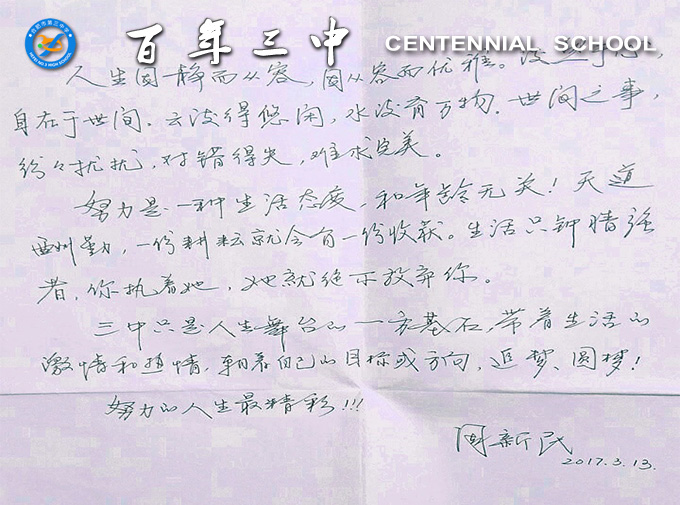 最后祝愿母校三中新百年新辉煌!祝愿2021届学弟学妹们六月梦想成真、精彩绽放!
