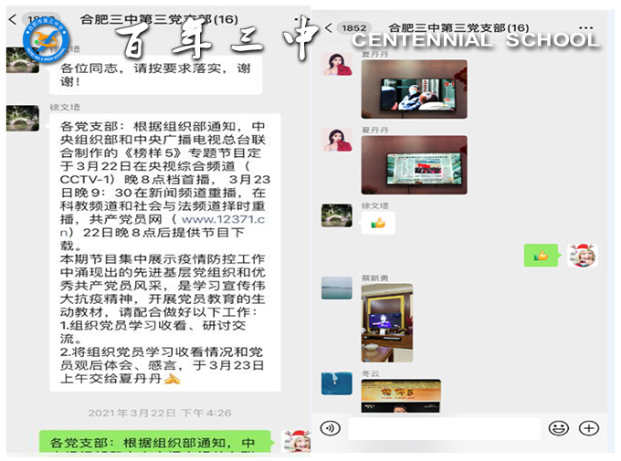 按照《点点手机版下载官网app关于中国共产党成立100周年庆祝活动的实施方案》的工作安排,在3月底到4月初,点点手机版下载官网app第三支部先后组织了两次主题党日活动,分别是观看《榜样5》和清明祭奠英烈活动。活动虽然是在家和线上完成,但大家的积极响应号召、主动热情学习。观看《榜样5》后,各位党员纷纷表示要以《榜样5》中的优秀模范为标杆,学而信之、学而思之、学而行之,让榜样之光不断照亮新时代奋进的征程。