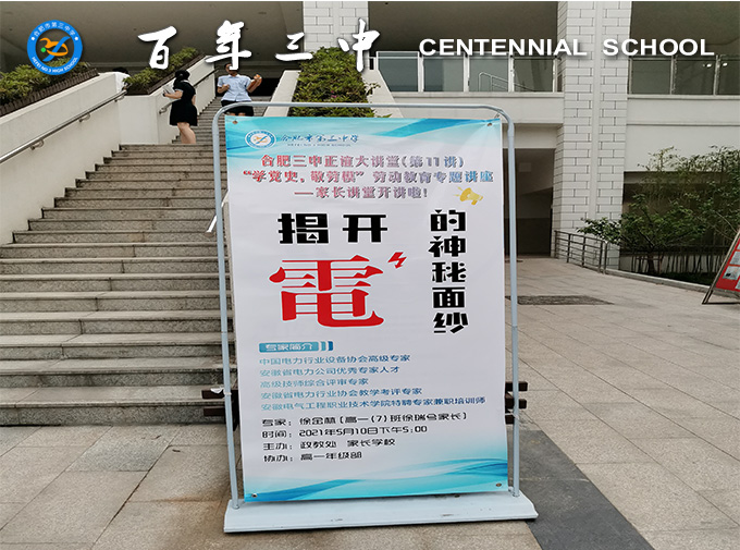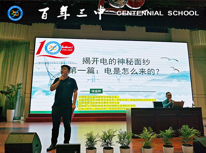 在校家委会协助下,本次讲座邀请到高一(7)班家长徐金林工程师。他结合自身的工作特点,给同学们带来了一场主题为《揭开电的神秘面纱》专题讲座。徐金林是中国电力行业设备协会高级专家,安徽省电力公司优秀专家人才,安徽省电力系统劳模。