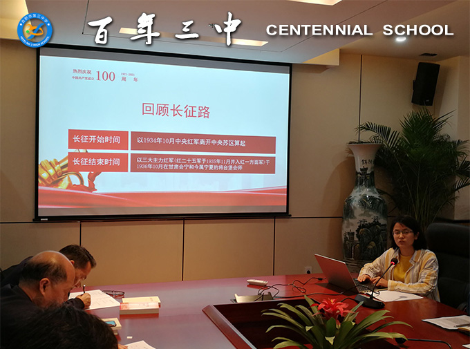 与会的全体党员一起了观看反映新民主主义革命时期遵义会议这一重大历史事件的微纪录片《百炼成钢》,回望过去的峥嵘岁月,缅怀革命先烈的丰功伟绩。随后,第二党小组组长张露露带来以《从“党史”中再识长征》为主题的党课,通过回顾长征路引导大家思考支撑着年轻的士兵浴血奋战走过漫漫长路的力量之源和今天追逐红军长征足迹回看这段历史的现实意义,并提出新时代的我们行走在新长征路上,要坚定走好自己的长征路。