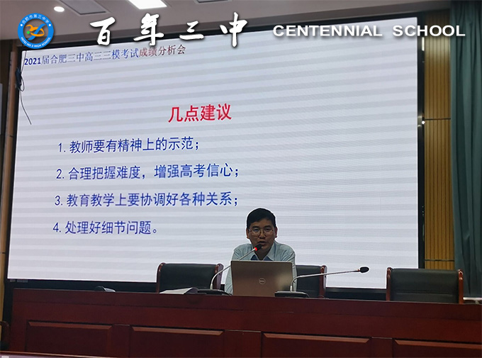 接着,陈卓副校长作主题发言并对冲刺阶段的工作进行指导。在分析了近期高三工作状况之后,他对全体高三老师提出了明确的工作要求:第一,打破惯性思维,提高学科贡献度;第二,把握教学难度,提高复习针对性;第三,统整教学内容,提高综合能力;第四,强化答题指导,避免非智力因素丢分;第五,凝聚备考力量,力求再上新台阶。他还勉励高三老师们同心同德,同舟共济,以积极的心态和脚踏实地的态度做好高三最后的冲刺工作。