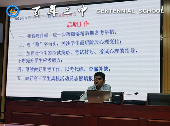 会议伊始,郑主任结合几次模考对高三学情作了全面细致的数据分析,既肯定了成绩,也指出了问题所在。希望老师们认真反思和总结得失,关注学生的薄弱学科,给予学生更多的方法指导。接着对冲刺迎考工作进行具体细致安排,强调了以下四点内容:一是落细落精后期备考举措,扎实推进教学工作;二是坚持“稳”字当头,关注学生的心理变化;三是做好组考工作,做到以考代练,查缺补漏;四是加强对学生考试策略、技巧和心理的疏导,提高学生应试能力。