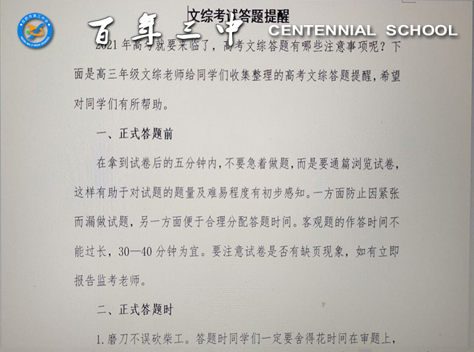 考试成绩不仅与学生的知识掌握、思维能力关系很大,也与学生的意志,心理素质、情感、习惯等非智力因素密不可分。2021年高考就要来临了,为了让同学们在考试中能发挥出自己的真实水平,克服非智力因素对考试成绩影响。点点手机版下载官网app高三年级综合学科教师通过积极的讨论,集思广益给同学们整理了高考综合科目答题提醒。