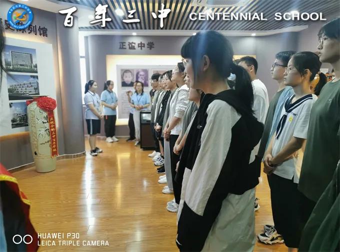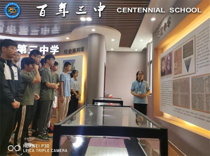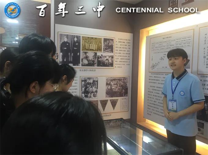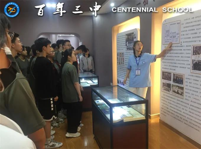 一所学校办学育人的历史,就是一部生动的教科书。为了让高一新生更好的了解校史、校情,传承学校精神文化,增进爱校、荣校情怀,激发学生“知我三中,爱我三中,荣我三中,兴我三中”的自豪感、荣誉感、责任感和使命感,高一年级新生入学教育期间,8月29日下午,校团委组织参观了校史馆,学校溯源讲解社团成员担任宣讲员。