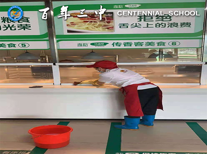 在开学前期,对食堂内部及周边环境做好充分的消毒工作,餐具严格按照一洗、二刷、三冲、四消毒、五保洁的标准流程进行彻底清洗消毒,对所有餐桌、椅使用75%酒精进行擦拭消毒,食品留样专人留样,专人管理,专柜存放,同时按照相关要求对制作人进行详细的登记,妥善保存留样记录以备查验。保证所有工作落实到人,有监督有检查。在食材采购方面严格把关,专人验收,所有原材料索证、索票、台账记录工作,确保原材料安全。制定了详细的生产计划单,增加菜品的花色品种,提高菜品质量即让广大学生吃的放心更要吃的营养。