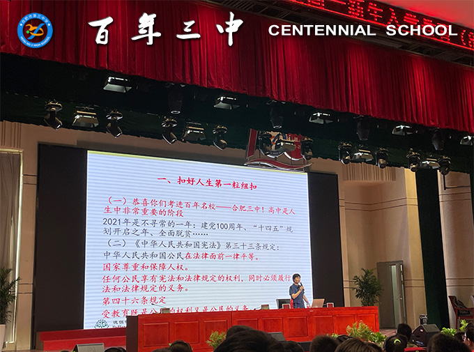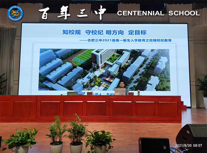 8月30日是入学教育的最后一天,但是新生的学习积极性不减。上午8点,从学校管理的实际出发,副校长冬云为新生们带来了务实的校规校纪讲座。希望同学们,一要心中有理想,肩上有责任,头脑有智慧,脸上有笑容;二要制订一份属于自己的、科学的、有效的学习目标;三要有“惜时如金、只争朝夕”的时间观念,合理安排时间,让自己成为时间的主人; 四要有“无规矩,不成方圆”的纪律观念,迅速转变角色,模范遵守校纪校规。同学们表示,要用自己的实际行动和优异成绩,赓续三中优秀文化,彰显三中学子风采。