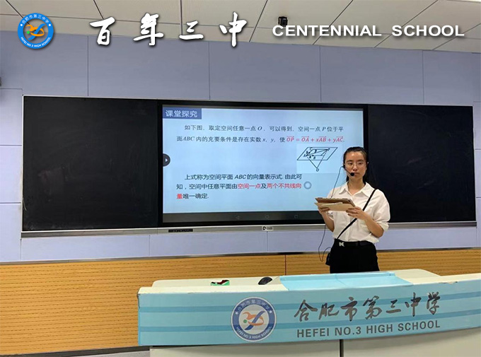 方萍老师比赛课题是《空间中点、直线和平面的向量表示》,充分应用网络平台、电子白板、平板电脑、手机、多媒体课件等先进设备和软件来支撑优化课堂教学,将信息技术与数学学科教学充分融合,建立起空间向量与几何要素的对应关系,为课堂带来了生机,得到了专家评委的一致认可。