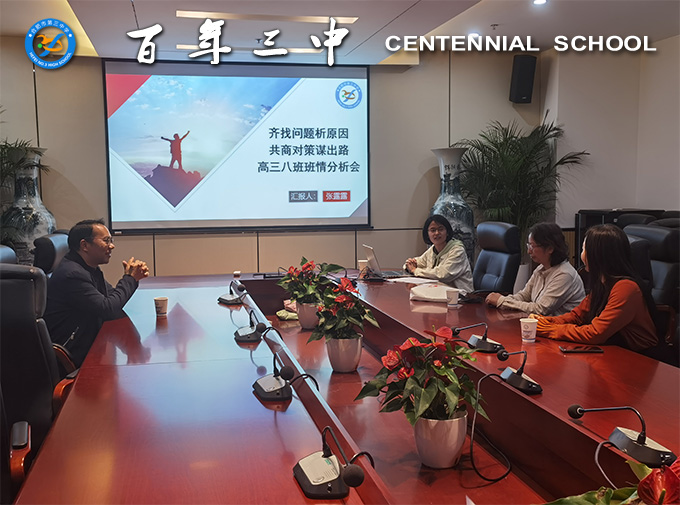 会议前期,年级部和各班级做了精心的准备。级部主任贺泽新在周一的班主任例会上向各位班主任介绍了本次班情分析会召开的目的意义,要求各班主任结合近期班级的教育教学工作提前做好筹划。各班班主任认真研究班级班情,精心制作PPT。