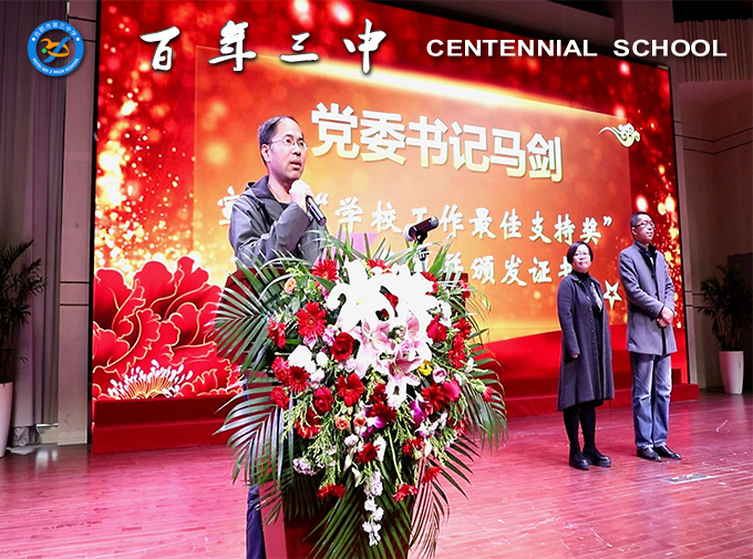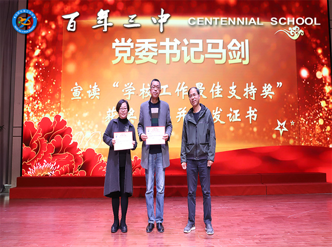 校党委书记马剑宣读“学校工作最佳支持奖”获奖名单并为获奖两位家委会负责人颁发证书。