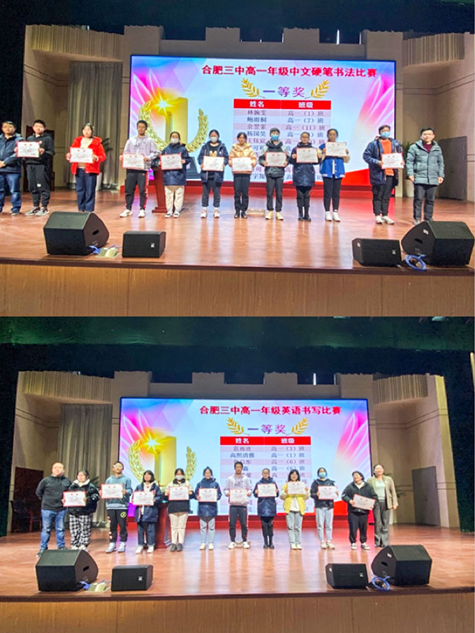 会议总共由四个部分组成。首先,会议对在10月举行的中文硬笔书法比赛和英文书写比赛中表现优异的同学进行嘉奖,学校肯定了各位同学在书写上所体现出的认真、务实的学习态度,并号召同学们向获奖者学习,端端正正写字,踏踏实实学习。