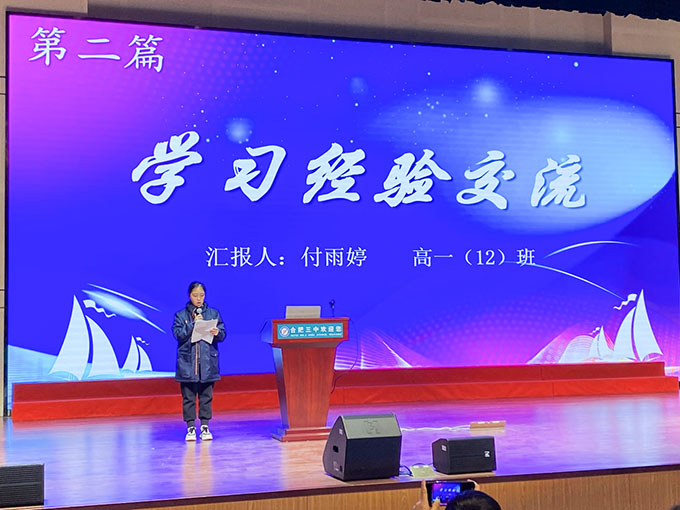 会议第二项议程是由高一年级(12)班付雨婷同学为大家带来学习经验分享,她回顾了自己在高一上半学期的学习,并号召同学们从以下几点做到:认真听课,课堂是学习最重要的场所;认真完成作业,及时检验学习成果;养成预习、复习的好习惯;转变思维,认真对待高中学习。付雨婷同学的诚挚分享,让台下同学深受触动,纷纷表示要向身边的优秀同学学习。