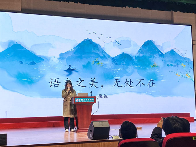 会议第三项议程是由高一年级的三位老师进行学业方法指导。首先由高一年级的柴俊老师进行语文学习指导,柴老师用四句古文“博观而约取,厚积而薄发”“身无彩凤双飞翼,心有灵犀一点通”“独学而无友,则孤陋而寡闻”“书山有路勤为径,学海无涯苦作舟”,从输入与输出、共情力、见贤思齐、勤奋学习四个方面与大家分享了自己的高中语文学习经验,号召大家发现语文之美,致力于提高自己的语文学习素养,培养终身学习理念。