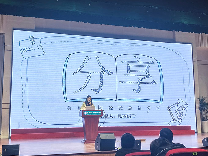 接着,高一年级的张丽娟老师进行了英语学科的学业指导,张老师从词汇、语法、听力、阅读和写作五个方面介绍了英语学习之道。同时,张老师还向同学们介绍了艾宾浩斯记忆法,号召同学们要打好基础,背单词学语法,在此基础上练习自己听说读写的能力。