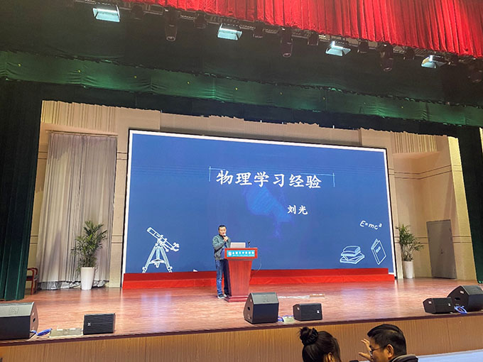最后,高一年级的刘光老师进行了物理学科的学业指导。刘老师表示:“新高考形势下,物理仍然是最重要的小科,同学们不可忽视。”刘老师首先要求同学们不要进行自我设限,要有迎难而上的勇气。同时,刘老师提到物理学习过程中不要仅仅关注方法,更要关注流程。接着,刘老师从预习、上课、复习、作业等方面和同学们进行了经验分享探讨,并鼓励同学们多使用比较法、图像法、归纳法。