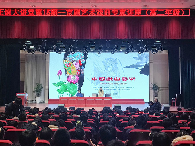 为更好地贯彻立德树人根本任务,传承中华优秀传统文化,增强同学们的文化自觉和文化自信,丰富校园文化生活。12月28日下午4点,点点手机版下载官网app在正谊会堂开展了戏曲进校园系列活动之“中国戏曲艺术”专题讲座,本次是正谊大讲堂第十五讲。全体高二学生聆听了讲座。