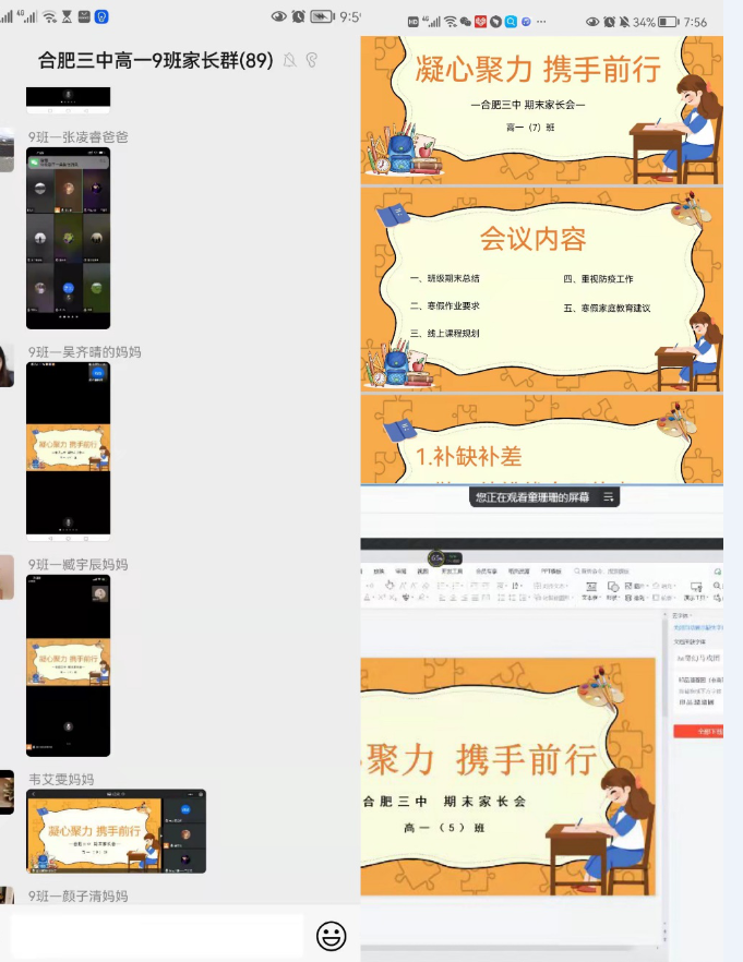 会前,高一年级各班班主任在年级部的带领下进行了大量准备工作,包括提炼会议要点、精心制作课件、讨论各项流程等。线上家长会主要从期末总结、假期学习安排、疫情防控、亲子相处建议等几个方面开展。