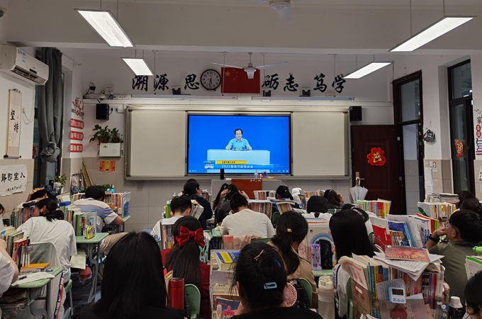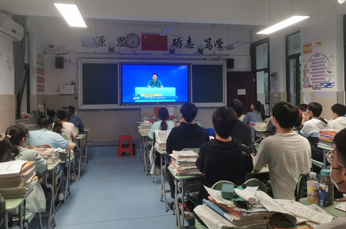 2022年4月25日下午班会课,2022届高三召开了一次特别的班会,由学校毛晓斌校长做高考前动员讲话。下午5:20分,动员会准时开始,陈卓副校长主持。