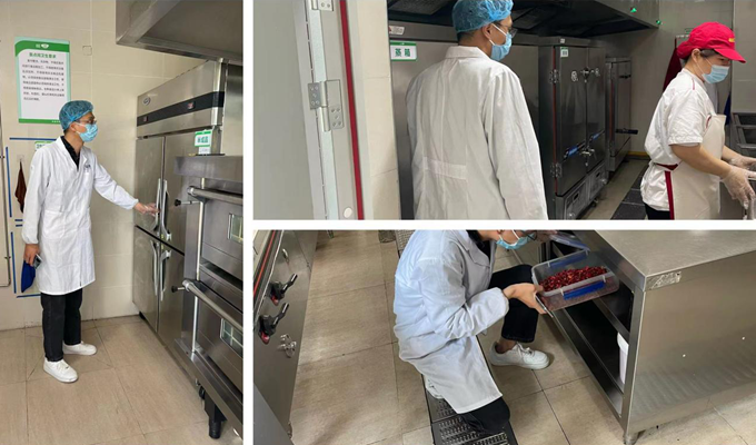 检查组深入库房、加工间、后厨、售卖间进行了细致的检查,查看原材料及物品摆放是否规范;防蝇、防虫、防鼠设施是否配备齐全;后厨环境卫生是否整洁;留样品种、重量及时间是否符合规范等。