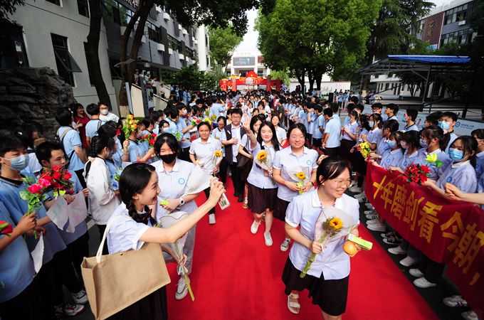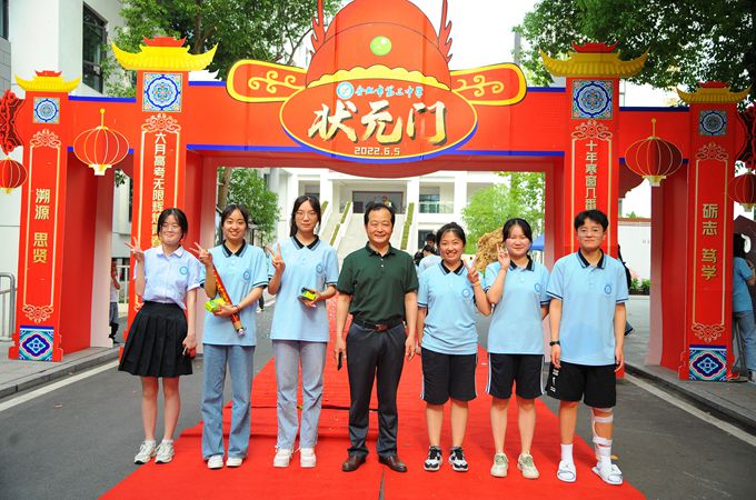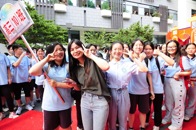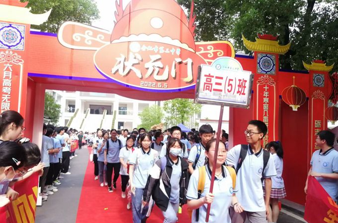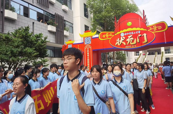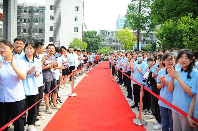 随着《祝你一路顺风》音乐声响起,在班主任的带领下,高三学子们带着青春誓言,迈着铿锵的步伐,踏上红地毯,跨越“状元门”。沿路夹道送行的是高一高二的学弟学妹们,他们高喊口号,挥动励志的标语牌,为学长送去离校前最后一段美好回忆。在全校师生的见证下,必将带着这份气势走进高考战场,用三年来持之以恒的积累,去证明自己不负青春,不负韶华。