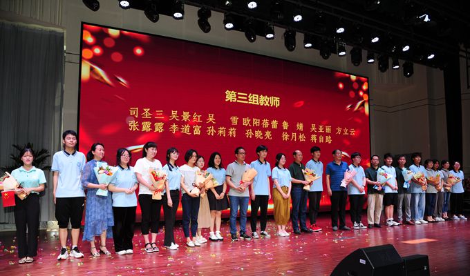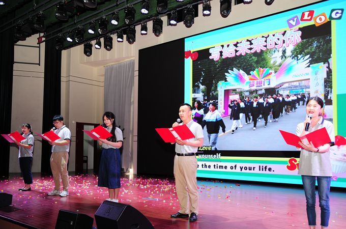 舞台上,孙晓亮、李永杰、卫骏峰、孙莉莉、杨慧等老师们深情朗诵《写给未来的你》,里面的每一句话,都是老师们对于同学们的殷切期盼。春风化雨,师恩难忘。
