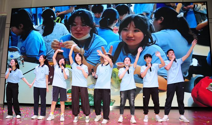 来自高三(7)班的陈家慧同学代表全体高三学生表达了对老师和母校的感谢之情,同时也表达了继续努力学习,不断追求卓越,积极为母校增添光彩的决心。在音乐声中,学生代表为高三全体教师献上感恩之花,表达最衷心的感激之情。在离别之际,高三学生代表合唱了一首《祝你一路顺风》,为每一位即将告别母校的学子,送去最美好的祝福。