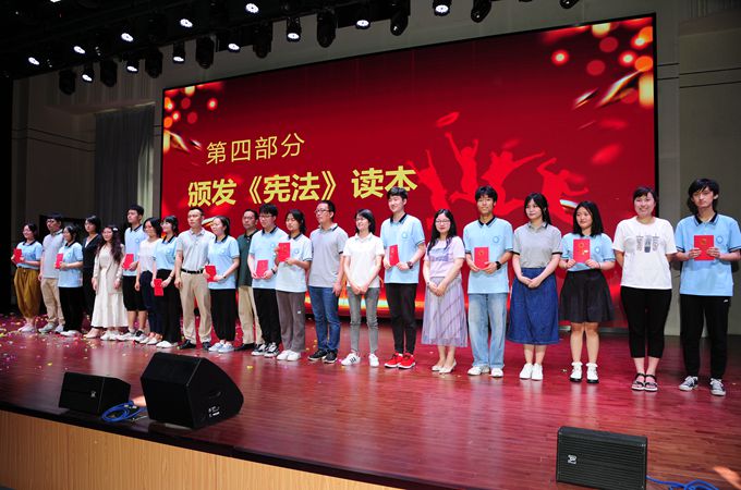 舞蹈串烧《不说再见》,跳出了同学们的青春活力,也传达了高三学子对于学校的不舍真情。想要明白成人的含义,就要先明白成年人的责任与担当。仪式现场,班主任为每一位同学颁发了一本《宪法》读本,希望同学们谨记自己的责任和使命,踏踏实实地走好人生的每一步。