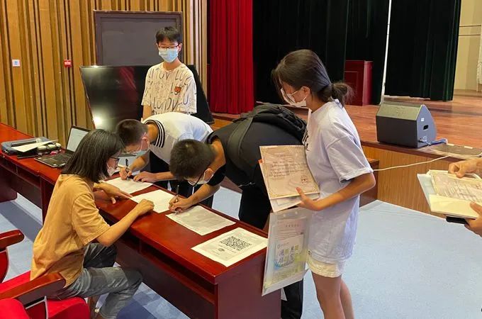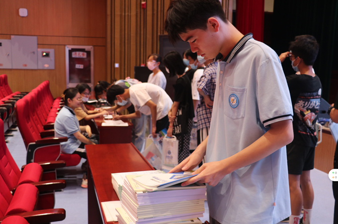 7月30日清早,为方便考生顺利快速完成报到工作,学校设立的疫情防控、安全保卫、学生服务、政策咨询、报到检录5个工作小组立即进入工作状态。学生从入校门开始就有学生志愿者热情引导,经疫防组安检后,进入有空调降温设备的正谊会堂排队等候,虽然报到人数多,但学校制定了合理的新生报到工作方案,按时间分批次报到,报到现场秩序井然,各个环节衔接紧凑,有条不紊地进行。学生到报到处登记信息并领取衔接教材和入学通知书后到会客厅排队量校服尺寸。工作人员热情引导,积极解答家长和学生提出的有关选课走班、分班、师资配备等问题。