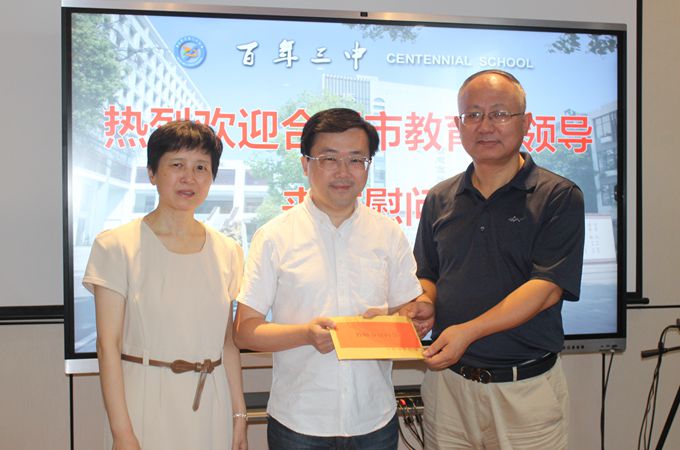 局领导听取了三中校领导工作情况的汇报,并与王侃老师亲切交谈,了解他的日常教学、个人成长等情况。王侃老师从教二十多年来,教学业绩显著,多次获校级“优秀教师”“优秀班主任”等称号,他幽默风趣的教学风格深受孩子们的喜爱和家长的一致好评。