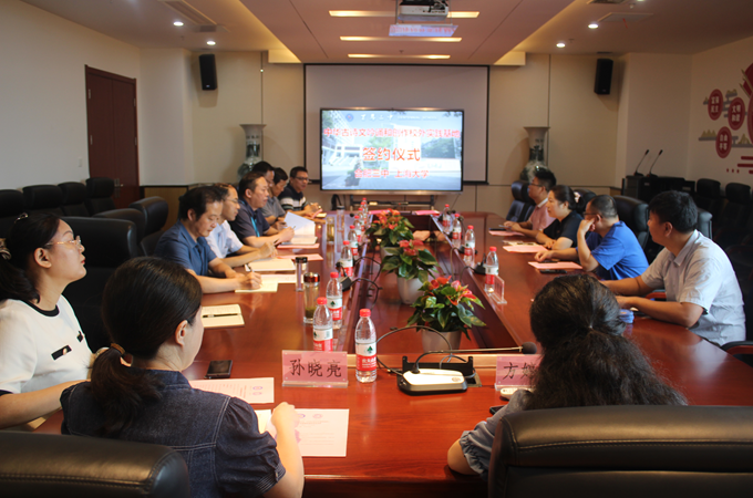 在签署共建协议之后,姚蓉院长代表上海大学中华古诗文吟诵和创作基地向点点手机版下载官网app进行赠书仪式。双方人员在亲切友好的交谈中合影留念宣告此次签约仪式圆满结束。
