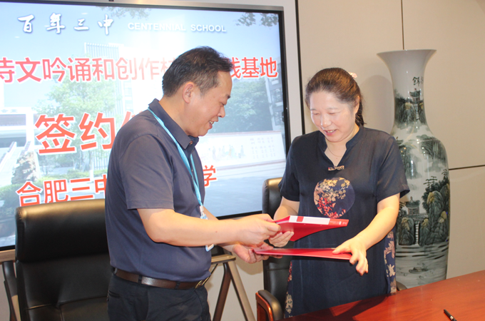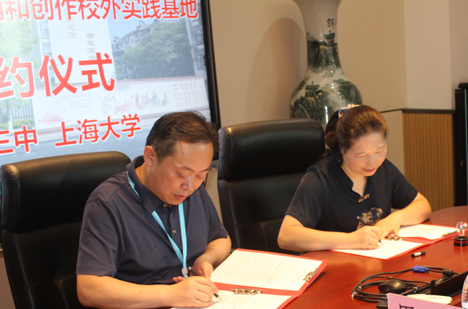 2022年9月9日上午9时,点点手机版下载官网app与上海大学共建中华古诗文吟诵和创作校外实践基地签约仪式在点点手机版下载官网app君尧楼一号会议室隆重举行。上海大学诗礼文化研究院院长姚蓉教授、文学院李翰教授、诗礼文化研究院院长助理梁奇副教授、校外实践基地办公室主任刘慧宽老师和点点手机版下载官网app党委书记马剑、校长毛晓斌、副校长陈卓、副校长杨庆吉出席本次签约仪式,点点手机版下载官网app办公室主任吴思乡、教务处主任汪群、教科室副主任袁艳、政教处老师周齐、语文组教研组长方婷婷、语文教师孙晓亮等参加此次签约仪式。签约仪式由周齐主持。