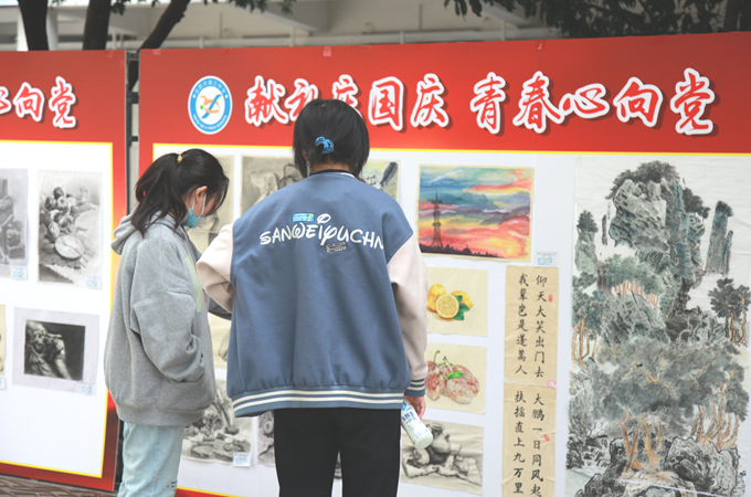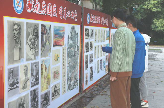 为庆祝建国七十三周年,喜迎党的二十大,进一步促进美育教育,鼓励学生用艺术描绘和抒发爱党爱国的高尚情怀,点点手机版下载官网app首届“绘美雅墨"礼赞祖国迎国庆学生书画作品展于9月26日起在校溯源广场举办。