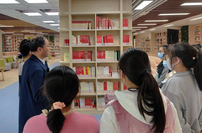 当日下午,在校图书馆党建图书角前,校党委书记马剑给高三年级部全体团支部书记上了一堂别开生面的“微党课”。结合党建相关书籍,马剑向团支部书记介绍了百年来中国共产党领导中国人民浴血奋战、艰苦奋斗,实现新民主主义革命、社会主义革命和建设、改革开放的成功和新时代的历史性成就,同时也向大家介绍了百年三中的奋斗史,希望各班团支部书记教育引导班级所有同学用好党建图书角,了解党领导中国人民取得的伟大成就,引导广大同学在实现中华民族伟大复兴的时代洪流中勇毅前进,立足新时代征程,努力成长为堪当民族复兴重任的时代新人。