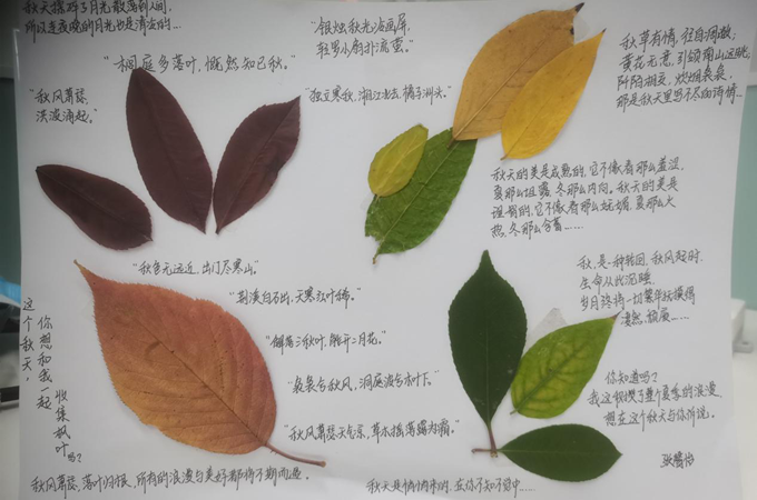 突如其来的疫情,让师生们不得不居家线上教学,但“停课不停学”,为丰富学生的居家战“疫”生活,提高学生的劳动实践能力,班主任方婷婷老师组织学生们积极动手,发挥自己的想象力来制作手工作品。学生们利用落叶、纸张、旧衣物、塑料瓶等废旧物品,通过剪裁、拼贴、缝合等多种方式,组合出了一幅幅富有创意又巧妙绝伦的画卷。整个创造过程既增强了学生的动手能力,又提高了他们的审美和创造力,实现了劳育与美育的有机融合。