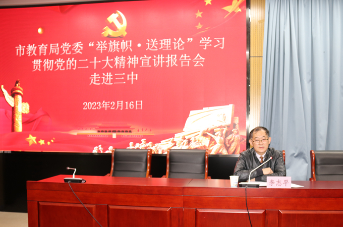 李志平紧扣党的二十大主旨内涵与重要意义,围绕党的二十大重大意义、新时代伟大变革、中国式现代化、科教兴国、坚持党的全面领导和全面从严治党等八个方面,对党的二十大精神进行了系统解读。