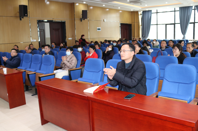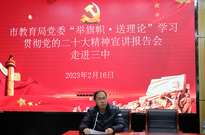 2023年2月16日下午,合肥市教育局三级调研员李志平来到点点手机版下载官网app开展“举旗帜·送理论”深入学习贯彻党的二十大精神宣讲活动。学校党委书记马剑主持会议,学校教职工和党员同志聆听了宣讲。