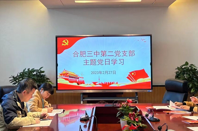踔厉奋发担使命,勇毅前行谱新篇。2023年2月27日下午,合肥市第三中学第二党支部开展主题党日学习活动,会议由党支部宣传委员卫骏峰主持,支部15名党员参会。