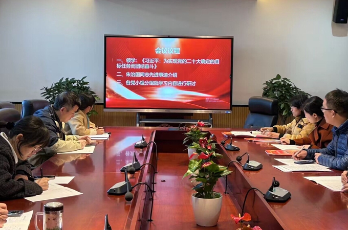 此次主题党日的主题为“学习二十大,奋楫再出发”。会议第一项,党支部组织委员张露露带领全体党员认真学习《习近平:为实现党的二十大确定的目标任务而奋斗》,深入学习贯彻习近平新时代中国特色社会主义思想和党的二十大精神,进一步把智慧和力量凝聚到实现党的二十大确定的目标任务上来,进一步增强对全面建设中国式现代化的深刻理解和全面把握。会议第二项,支部书记蒋自路对朱治国同志立足岗位、无私奉献、勇挑重担、砥砺前行,直至献出自己宝贵生命的先进事迹进行了详细介绍,同时组织全体党员观看新闻视频,要求以朱治国同志为榜样,对标先进,见贤思齐,始终坚定理想信念,用实际行动践行责任和担当。