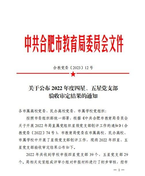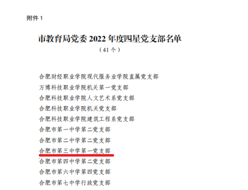 经合肥市教育局党委会议研究决定:合肥市第三中学第一党支部被评为四星党支部。这既是对党支部工作的肯定,更是对全体党员的鼓励与鞭策。
