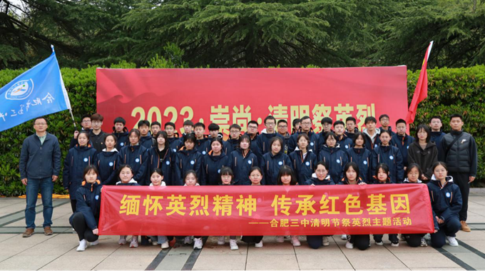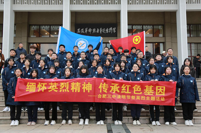 庄严肃穆的蜀山烈士陵园,记录着满满英雄事迹的纪念馆,饱含着革命先烈们的崇高精神和不朽事迹。烈士陵园悼念广场中央,烈士纪念碑上铭刻着“江淮英烈永垂不朽”的几个大字,下面的英雄浮雕栩栩如生。在革命烈士纪念碑前,全体师生肃立默哀,并深深三鞠躬,表达对革命烈士的悼念和敬仰之情。