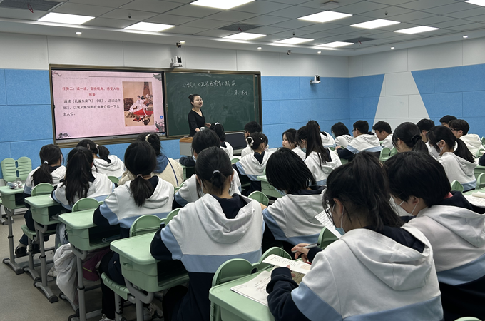 张闻老师将《氓》《孔雀东南飞》两篇文本进行联读,通过角色扮演让学生走进文本,探究人物悲剧命运的原因,同时结合当下社会现状帮助学生理解爱学会爱,让学生葆有爱的能力。课堂上张闻老师或引导,或点拨,或激励;同学们或说或演,或读或写,或谈论交流,或合作展示,精彩纷呈。