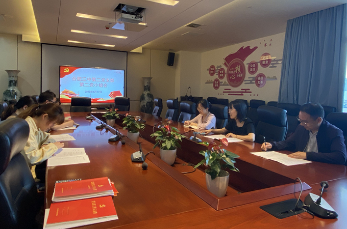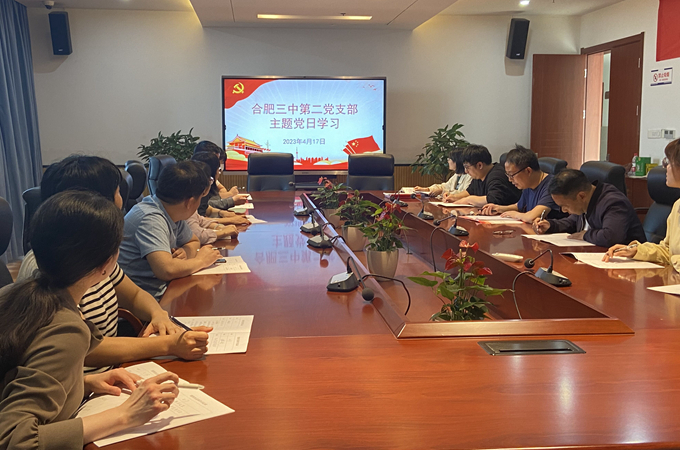 2023年4月17日下午,合肥市第三中学第二党支部在君尧楼八楼会议室召开党员大会。本次会议主要分为三项议程,由党支部书记蒋自路主持,全体党员参会。