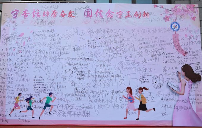仪式结束后,各班学生纷纷上前,在感恩墙上写下对班主任们最真挚的祝福。