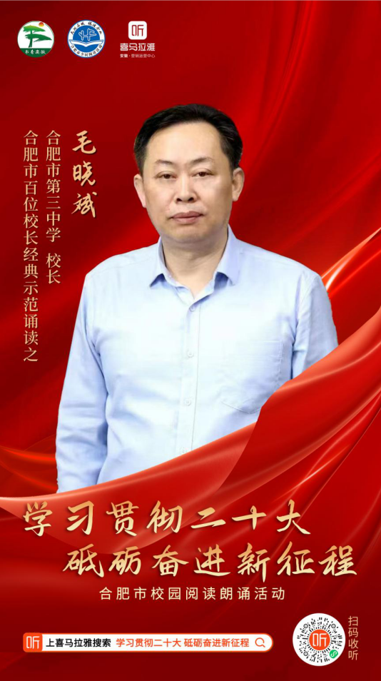 由中共合肥市委宣传部、合肥市教育局主办,喜马拉雅安徽营销运营中心承办的“学习贯彻二十大 砥砺奋进新征程”2023年合肥市主题阅读朗诵活动百名校长讲党史故事活动,点点手机版下载官网app校长毛晓斌入选示范诵读人,他讲述的党史故事《毛泽东送给陕北公学的两件“礼物”》正在喜马拉雅上展播,敬请收听!